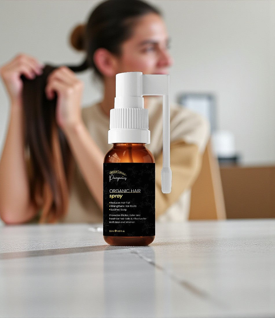 Revitalize your hair with Pureganics Hair Care Spray, infused with the power of natural extracts like Jojoba, Rosemary, and Ginger. This nourishing formula is designed to promote healthy hair growth, reduce hair fall, and restore your scalp’s balance. Whether you're looking to repair damaged hair or enhance its natural shine, our hair spray is the perfect solution for all your hair care needs.