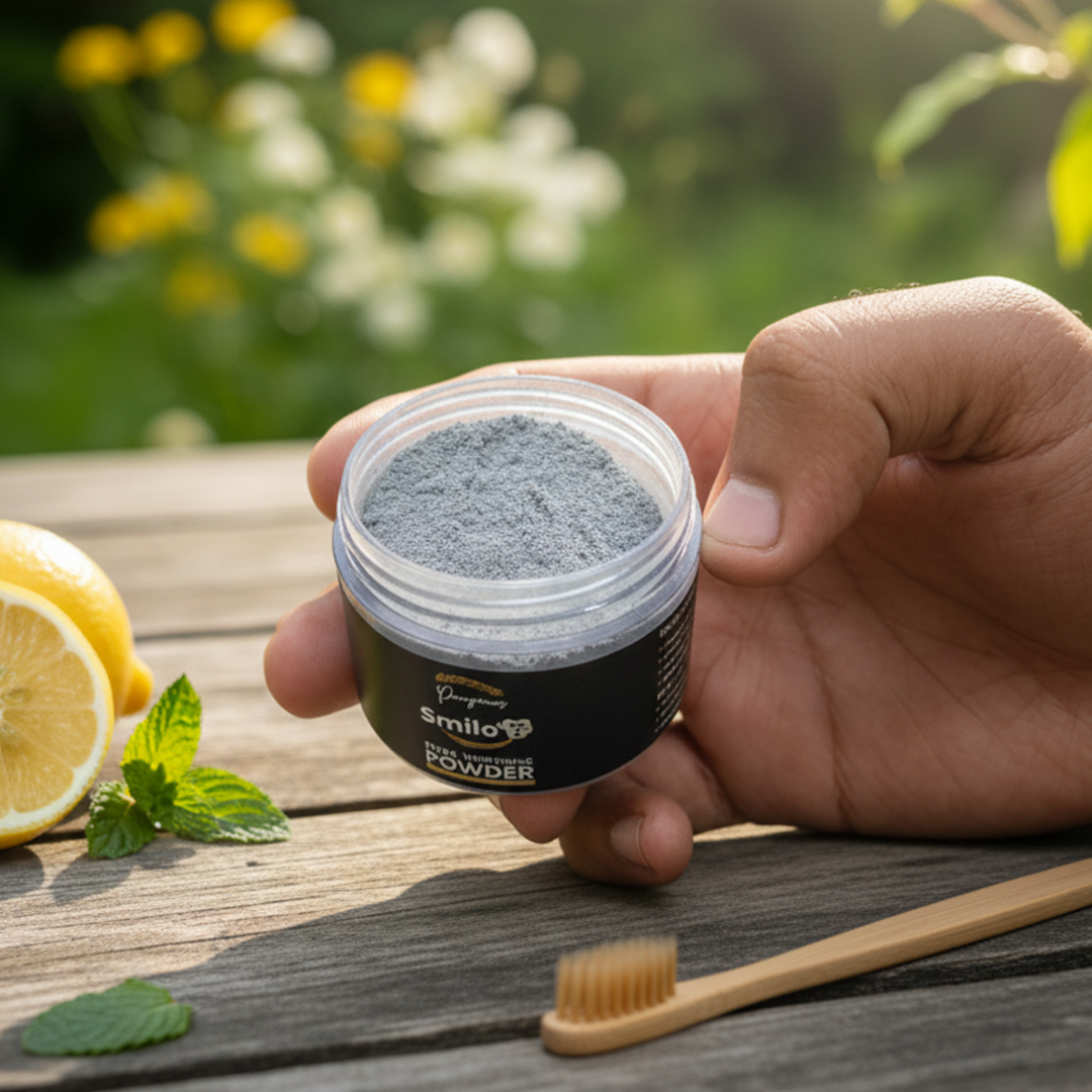 Pure herbal care for your smile! Whitens teeth, strengthens gums, controls bleeding, removes bad odor, and keeps your mouth fresh and healthy — all in one natural formula.